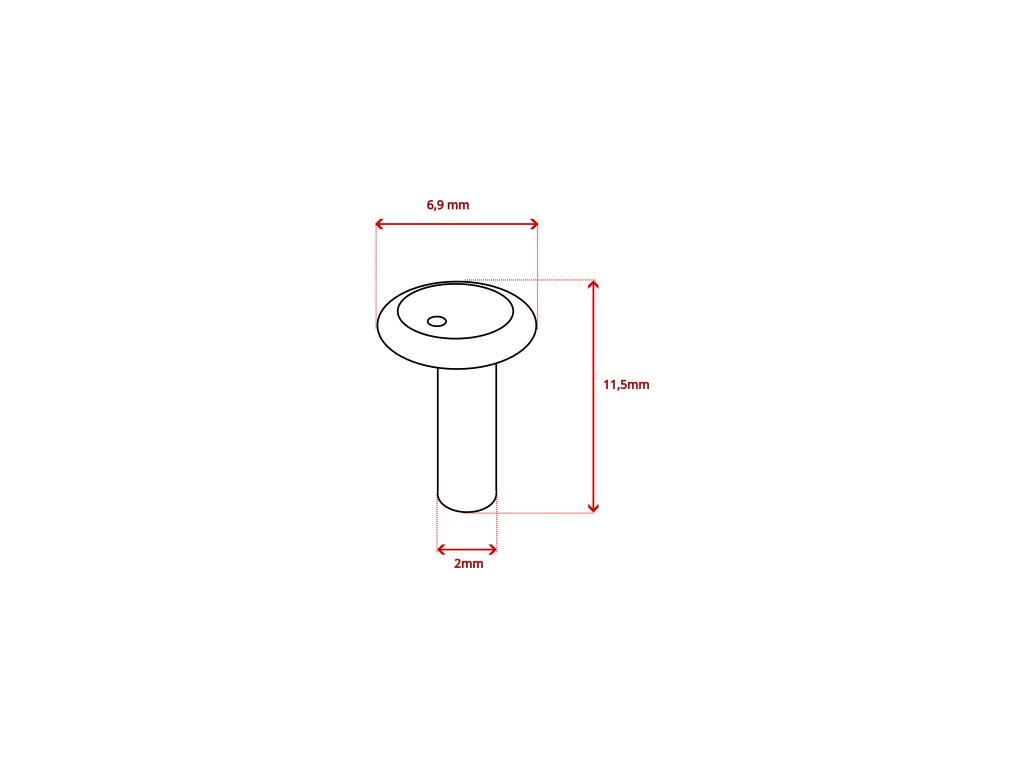 Priemer kolíka je 2mm, viď. technický nákres. Použite vrták s priemerom 2,4 mm.